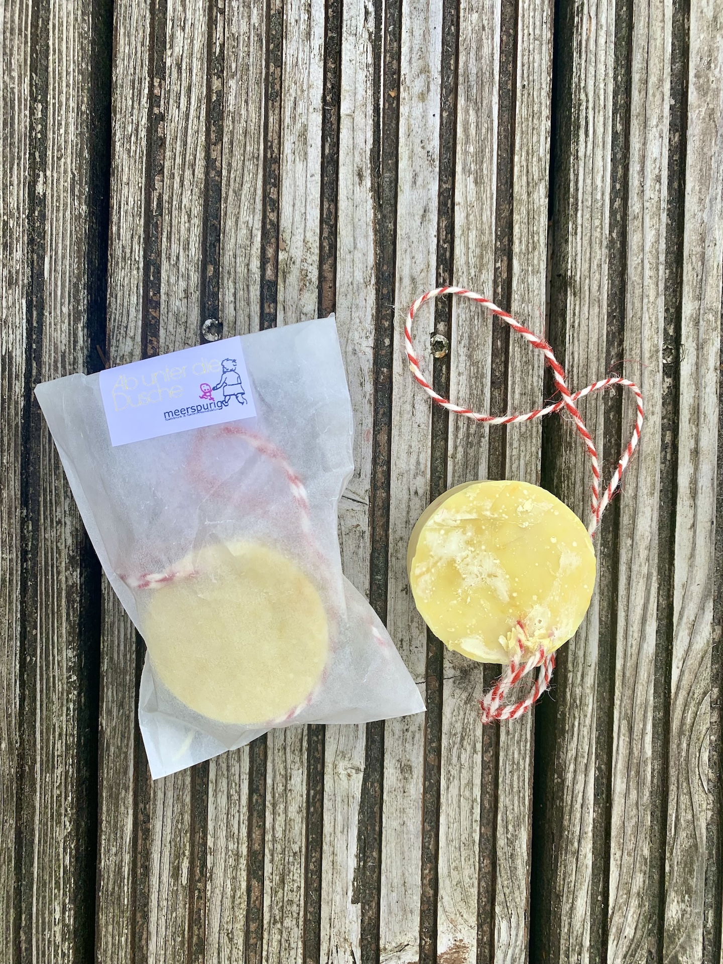 Inhaltsstoffe: Olea Europaea Fruit Oil(Olivenöl*), Butyrospermum Parkii Butter*(Sheabutter), Theobroma Cacao Seedbutter*(Kakaobutter), Sodium Hydroxide (NaOH), Aqua, Calendula Officinalis Flower*(Ringelblüten)*kbA