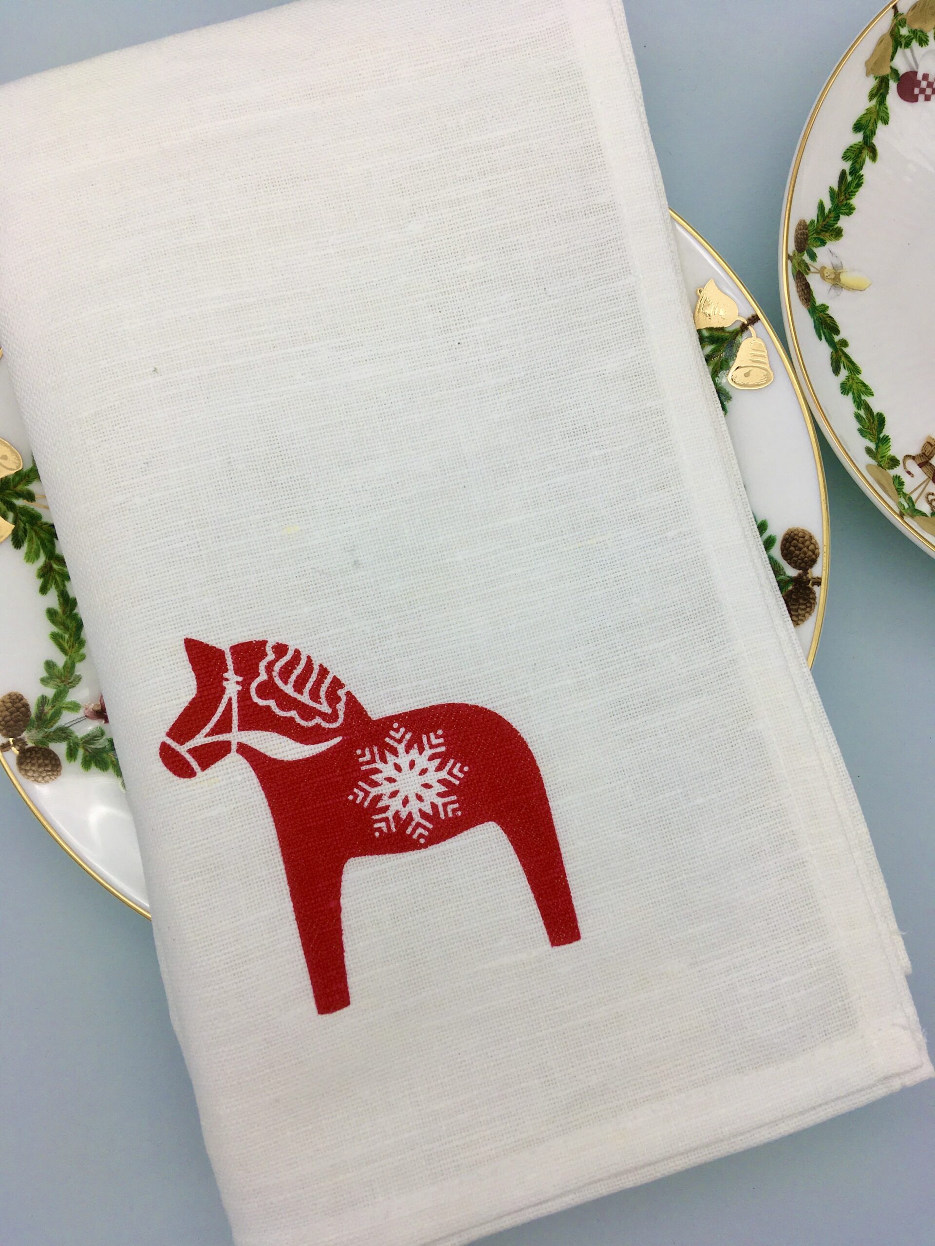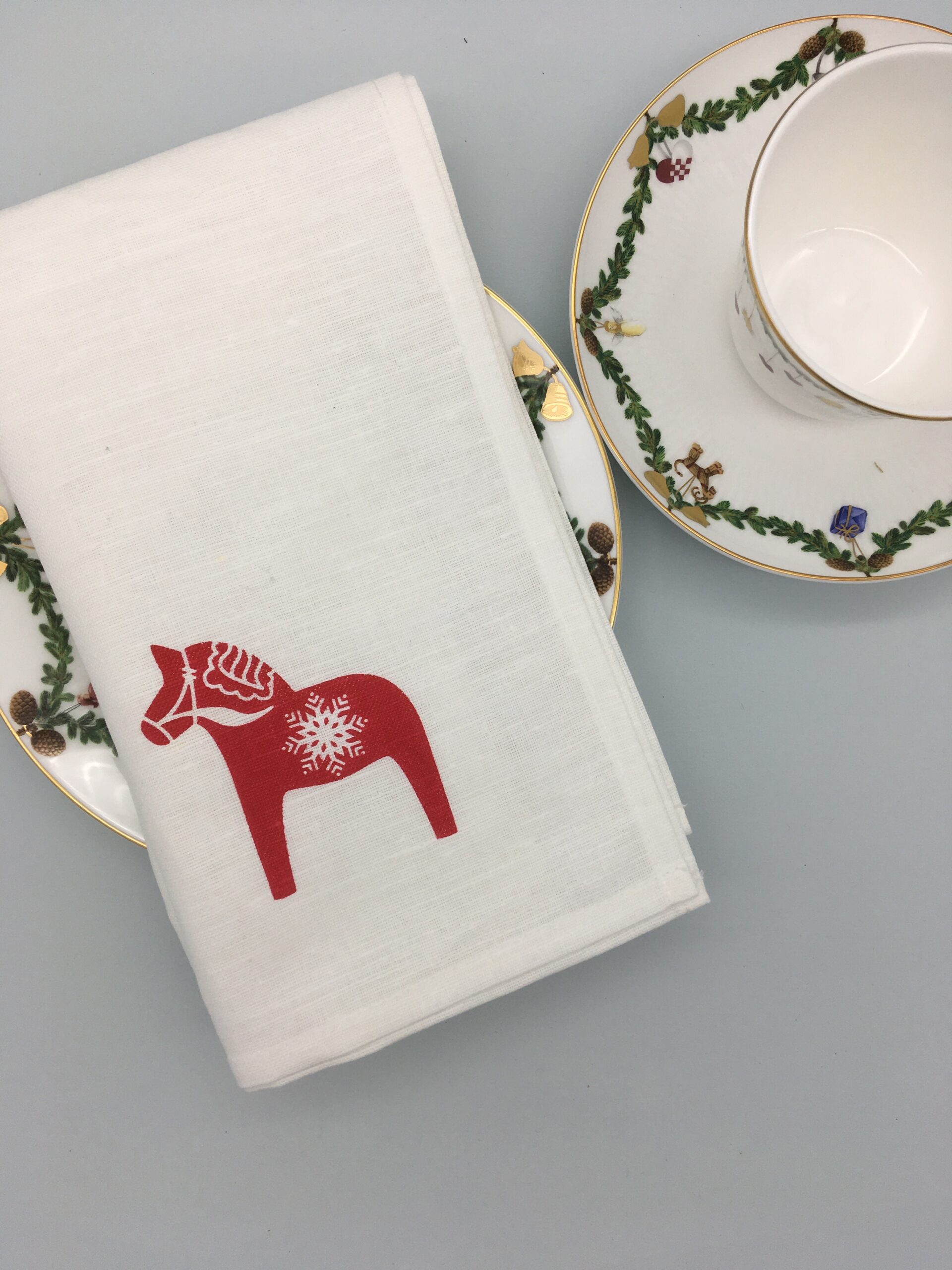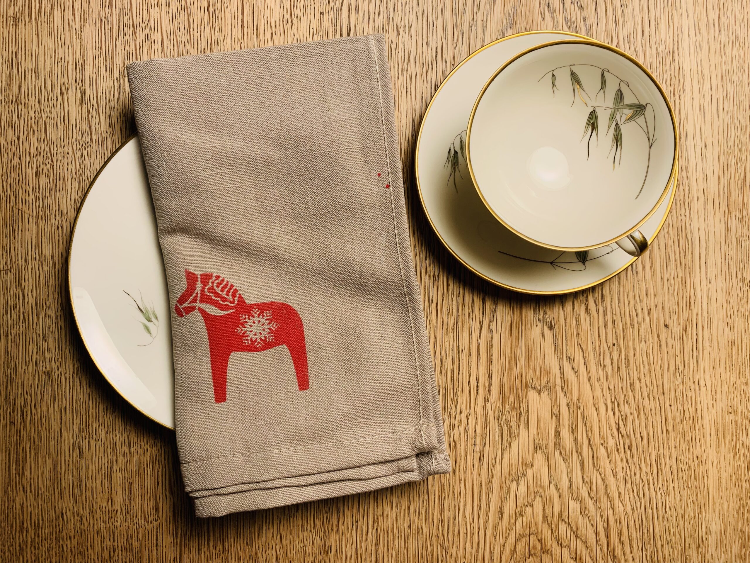 Die hochwertigen und robusten Servietten aus Halbleinen wurden per Hand mit wasserbasierter Farbe bedruckt. Jede Serviette ist ein Unikat.