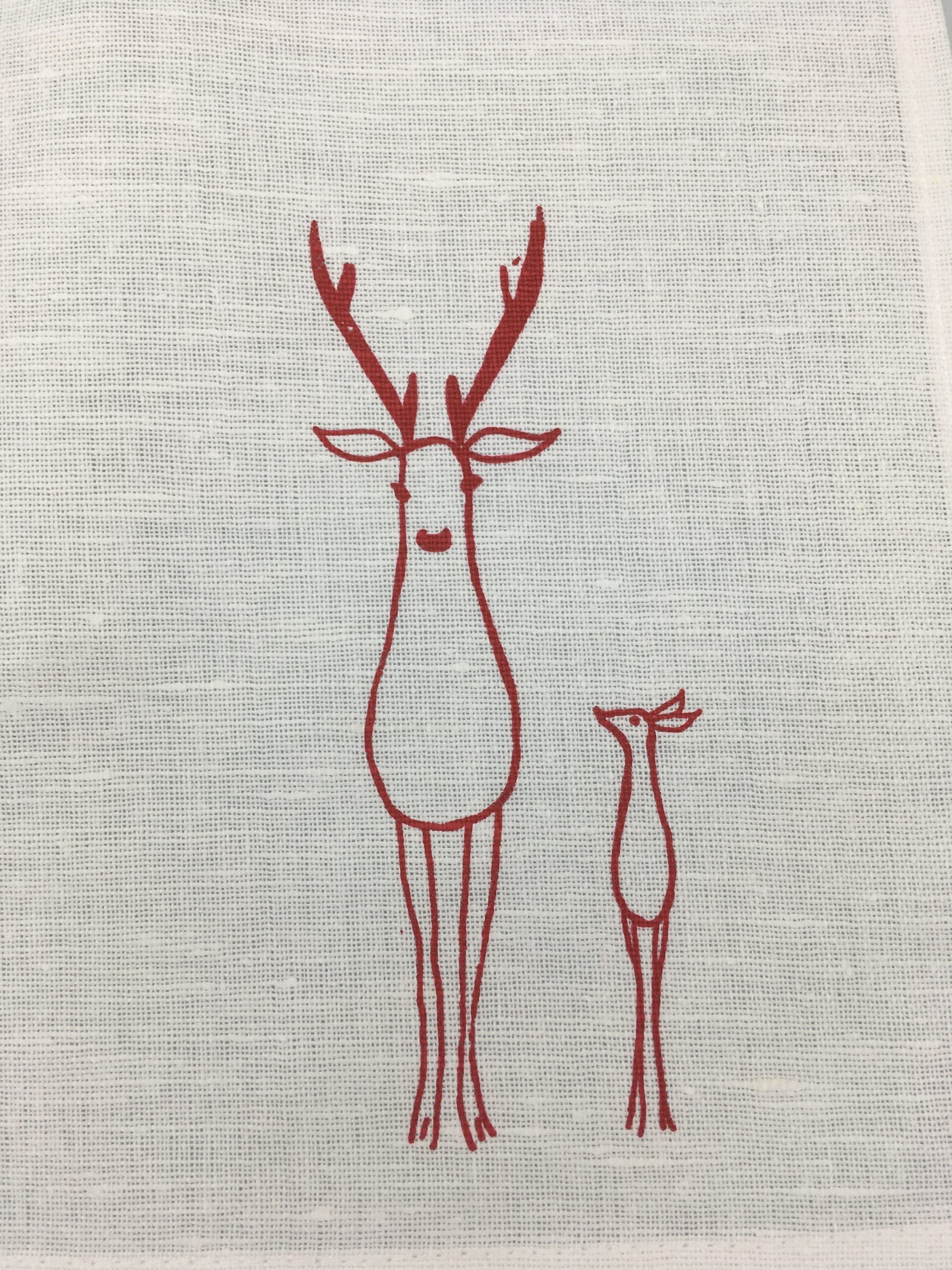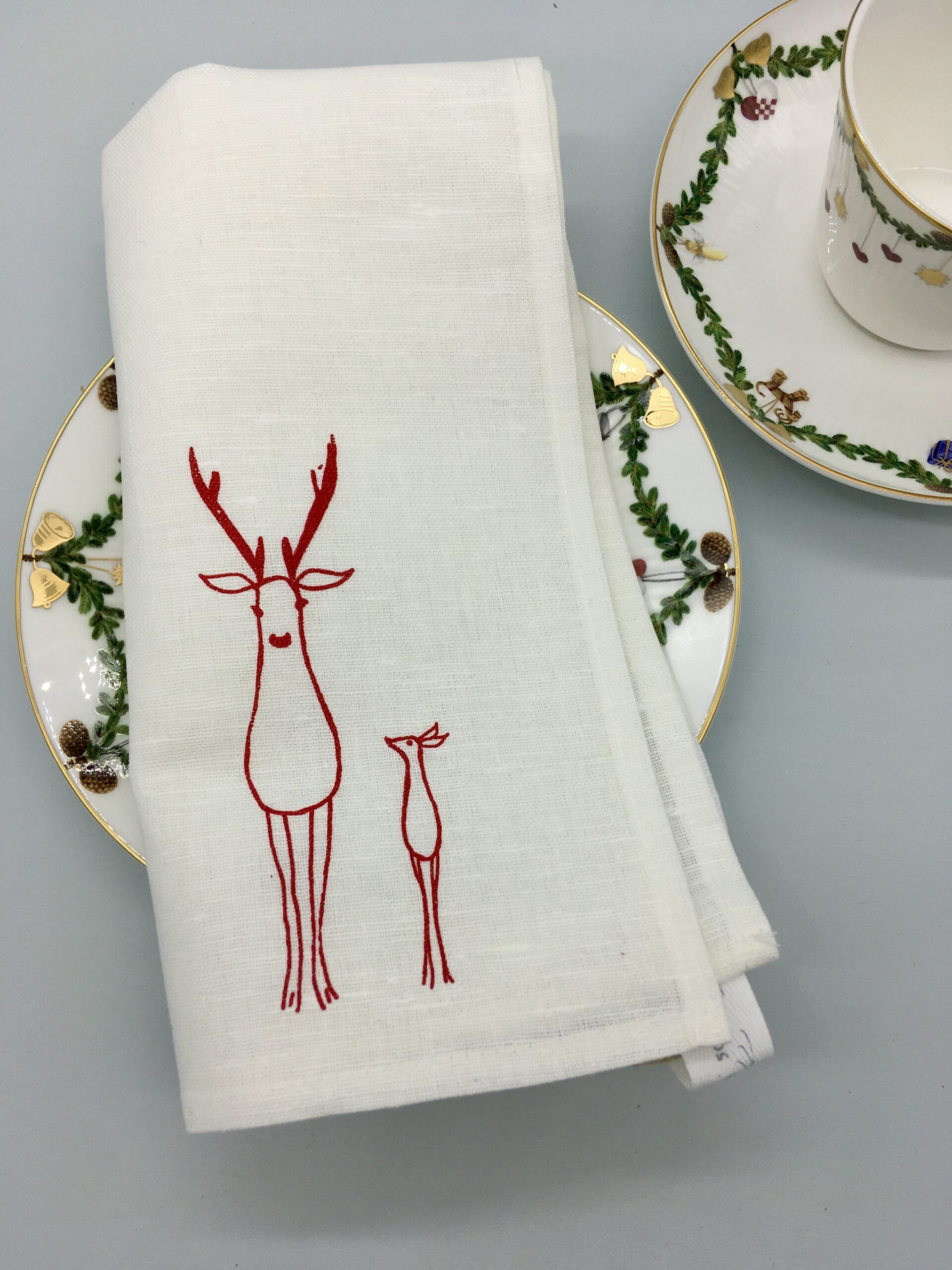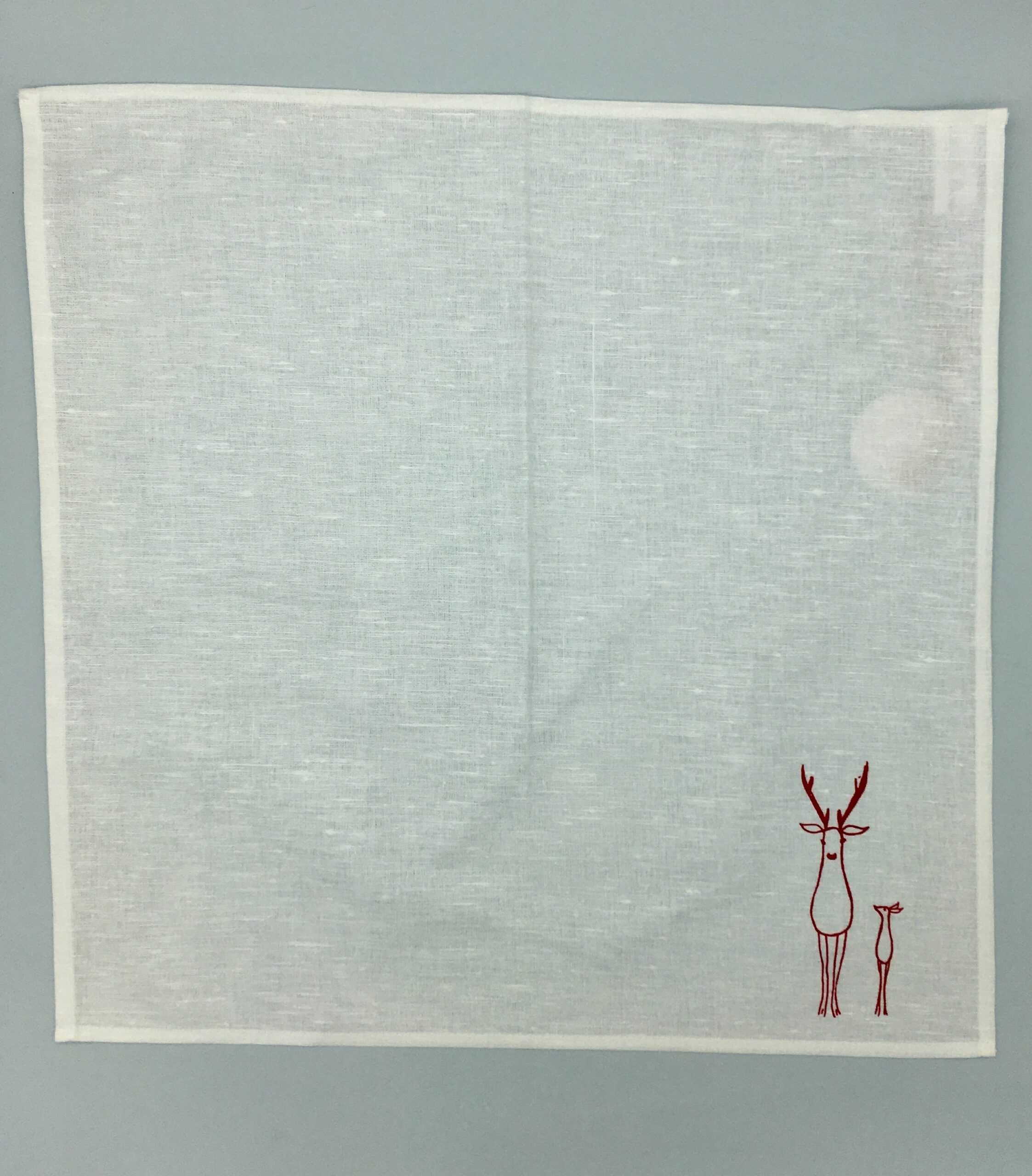 Die hochwertigen und robusten Servietten aus Halbleinen wurden per Hand mit wasserbasierter Farbe bedruckt. Jede Serviette ist ein Unikat.