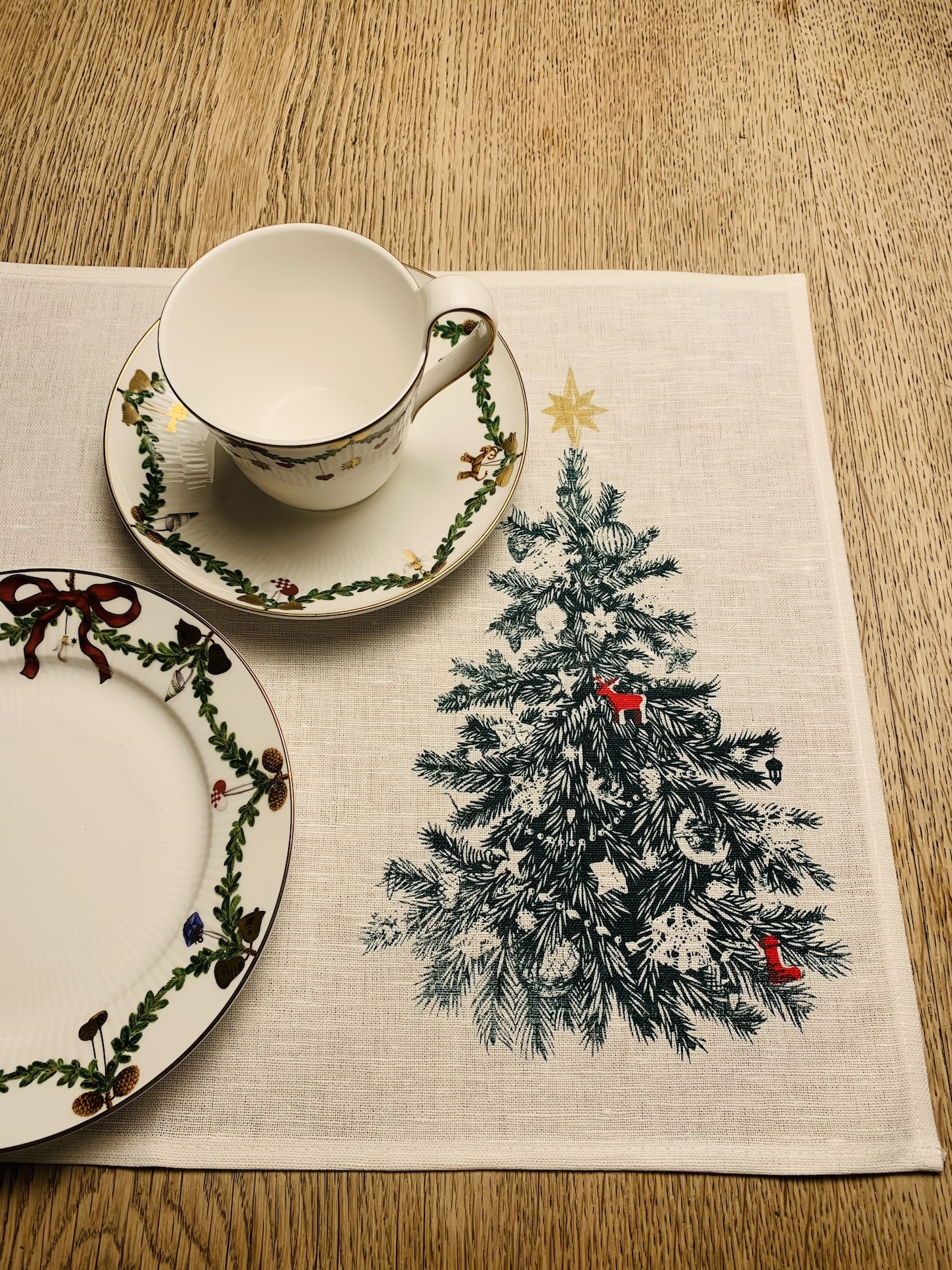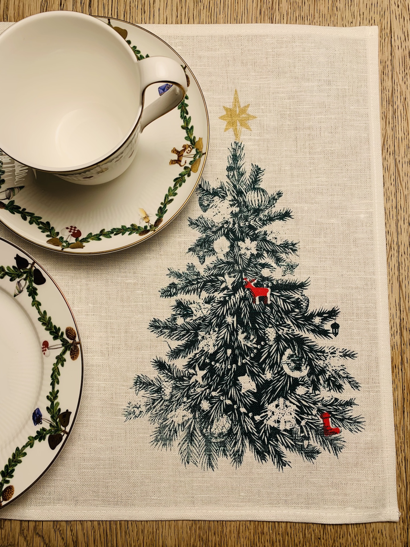 Weihnachtlicher Tischset aus Halbleinen mit Tannenbaum