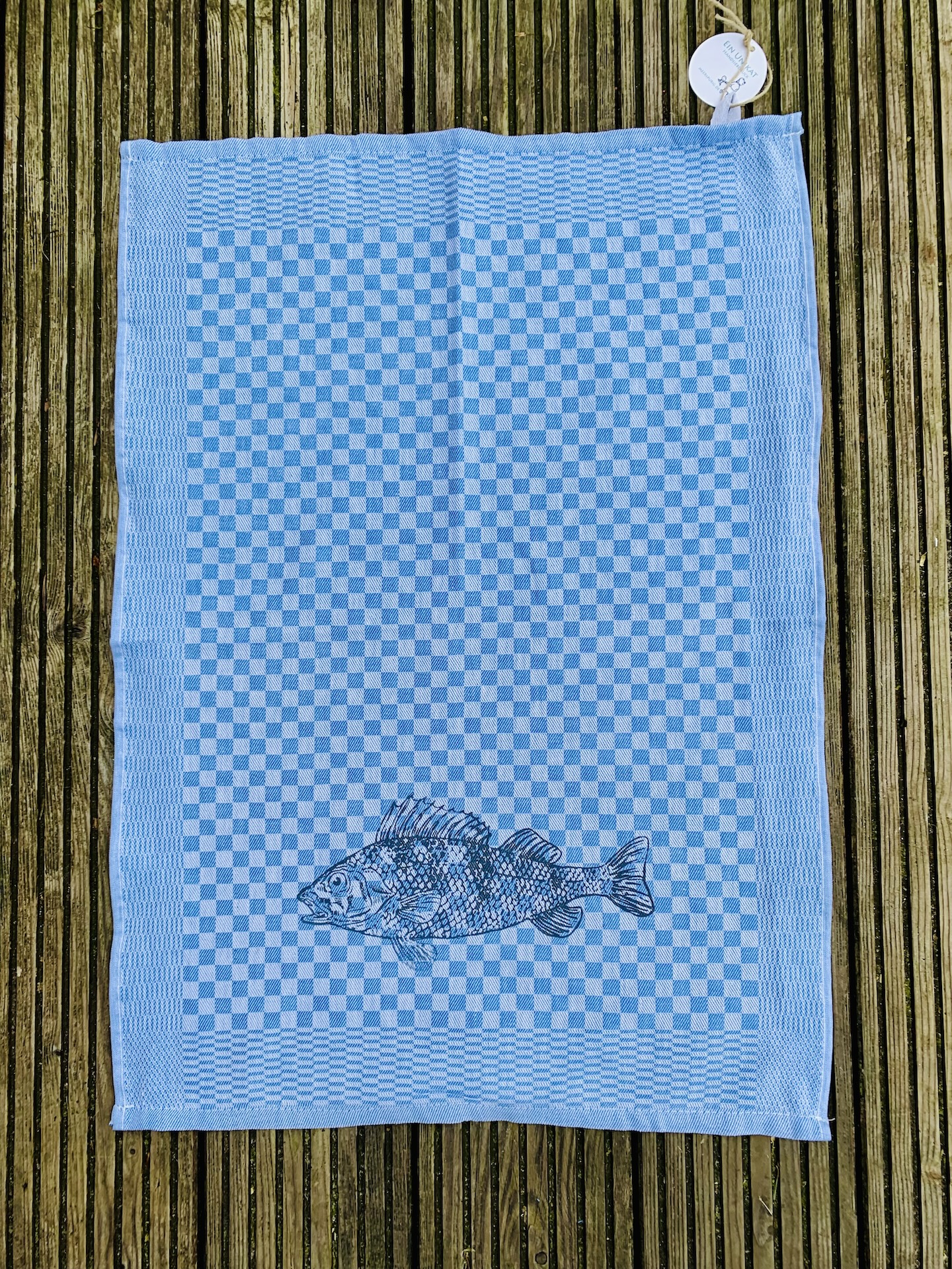 Das hellblaue Grubenhandtuch ist aus Baumwolle.
