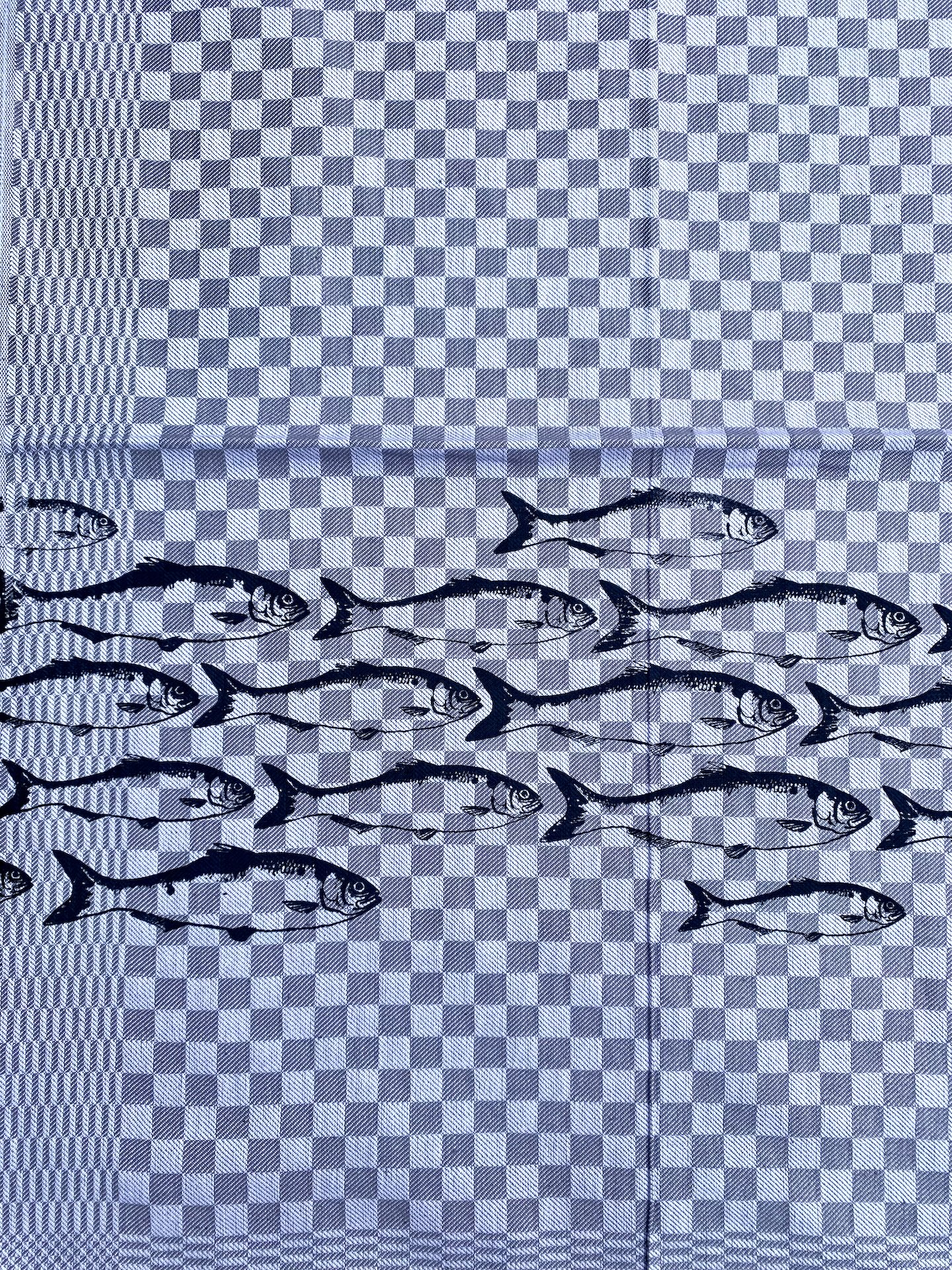 Baumwollgrubenhandtuch mit Fischschwarm grau