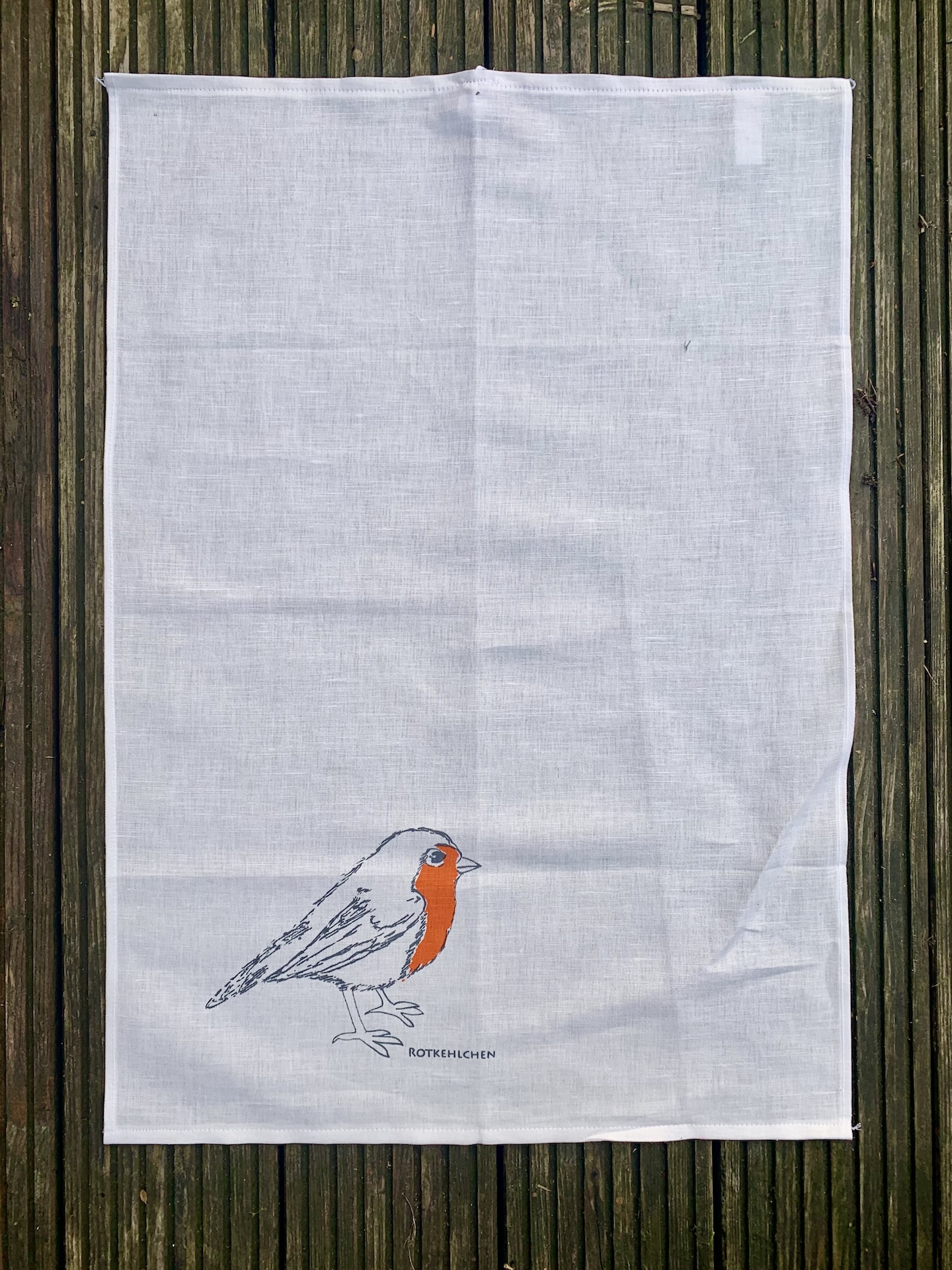 Das hochwertige und robuste Geschirrhandtuch aus Halbleinen wurde per Hand mit wasserbasierter Farbe bedruckt. Das Handtuch ist ein Unikat. Es macht nicht nur beim Abtrocknen happy, sondern bereitet auch Freude “beim Rumhängen” oder es liegt dekorativ auf dem Tisch.