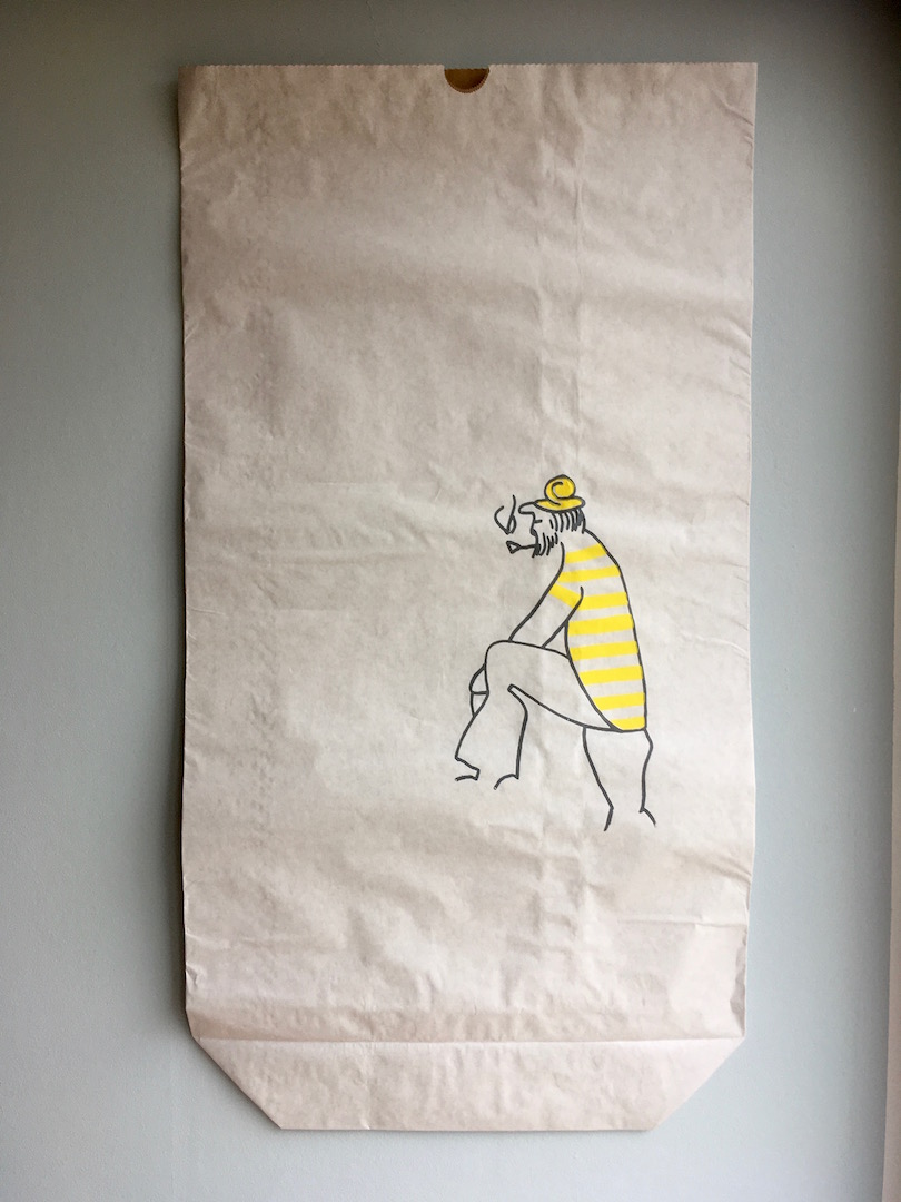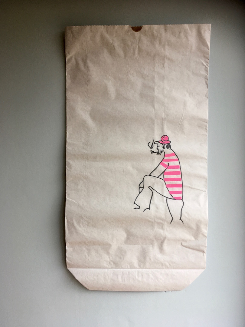 Per Hand mit Siebdruck und wasserbasierter Farbe bedruckt. Jeder Sack ist ein Unikat.