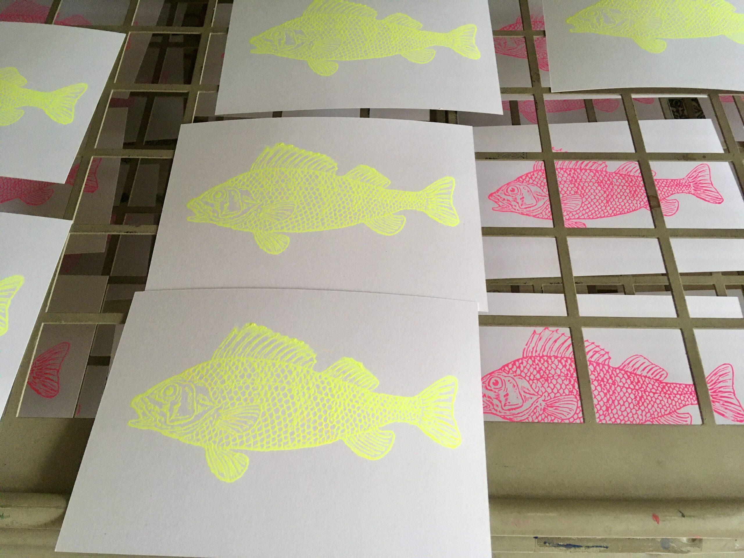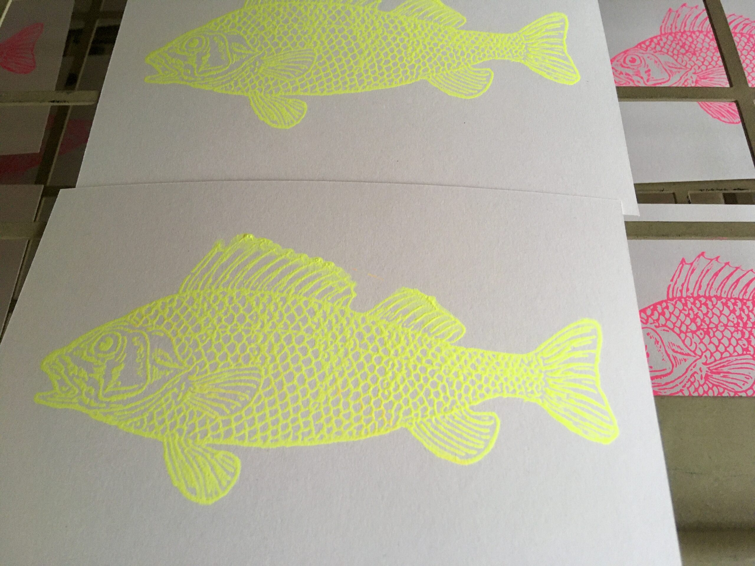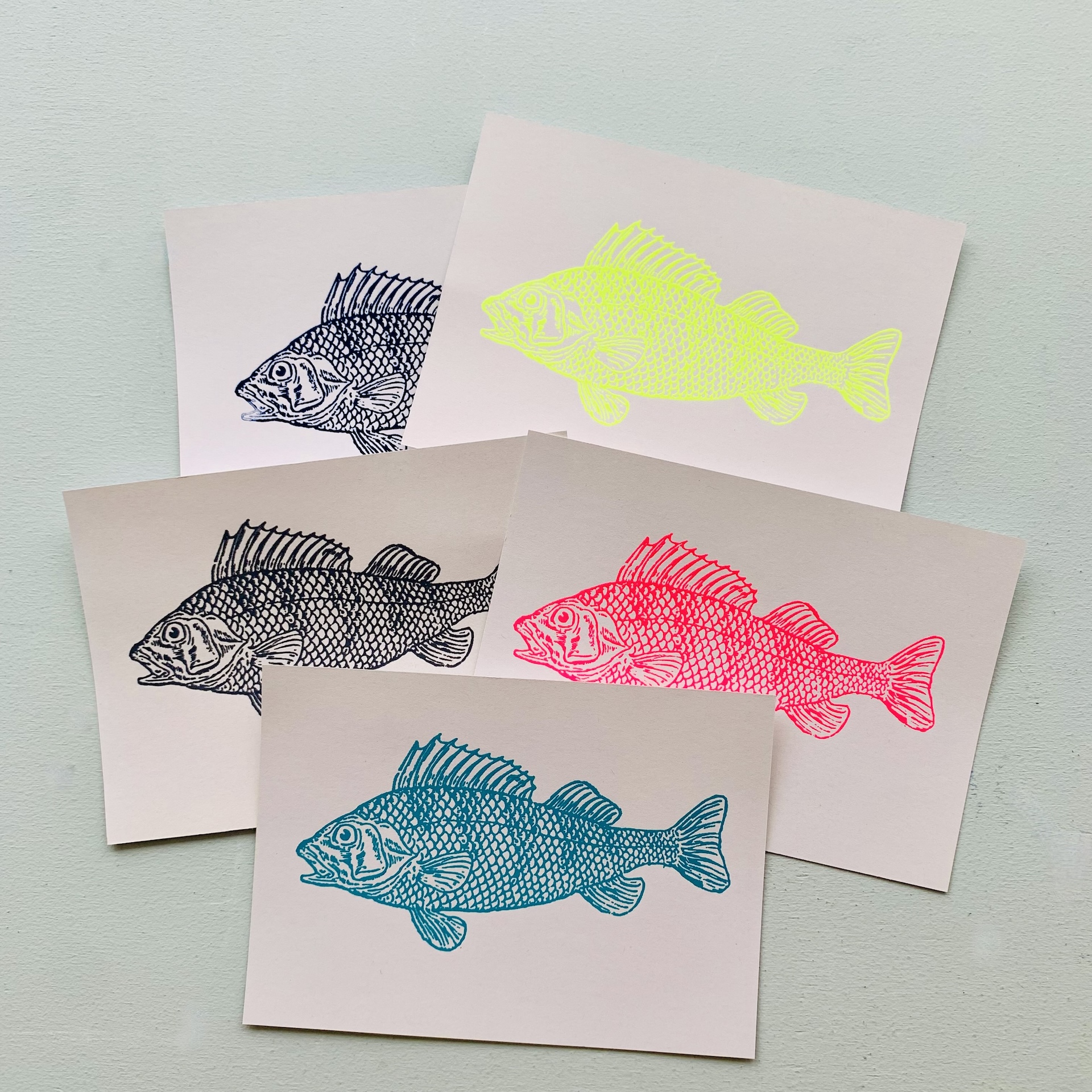 Handbedruckter Barsch auf 300 g/m² Recyclingkarton im