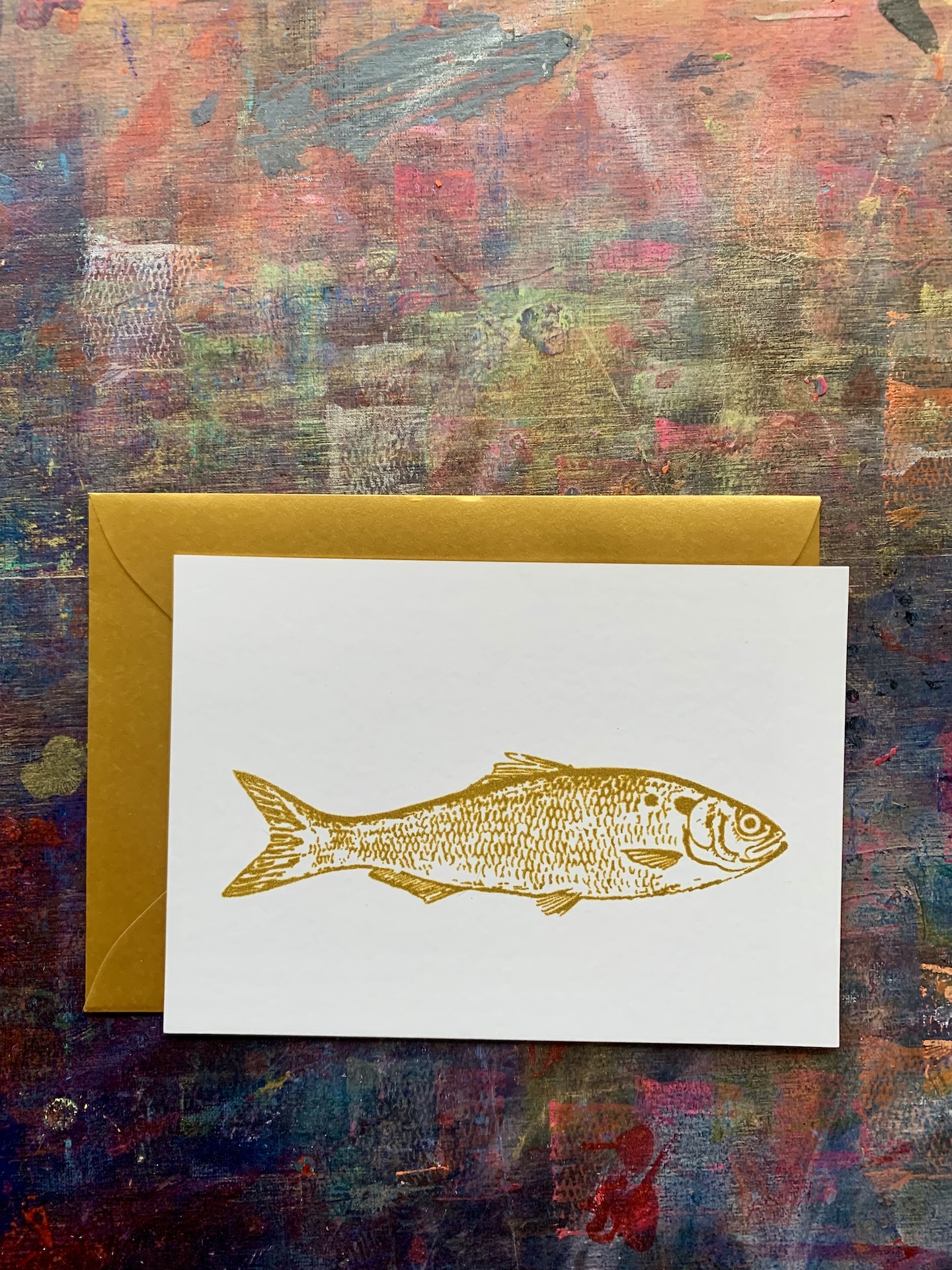 Goldige Karte mit Fisch
