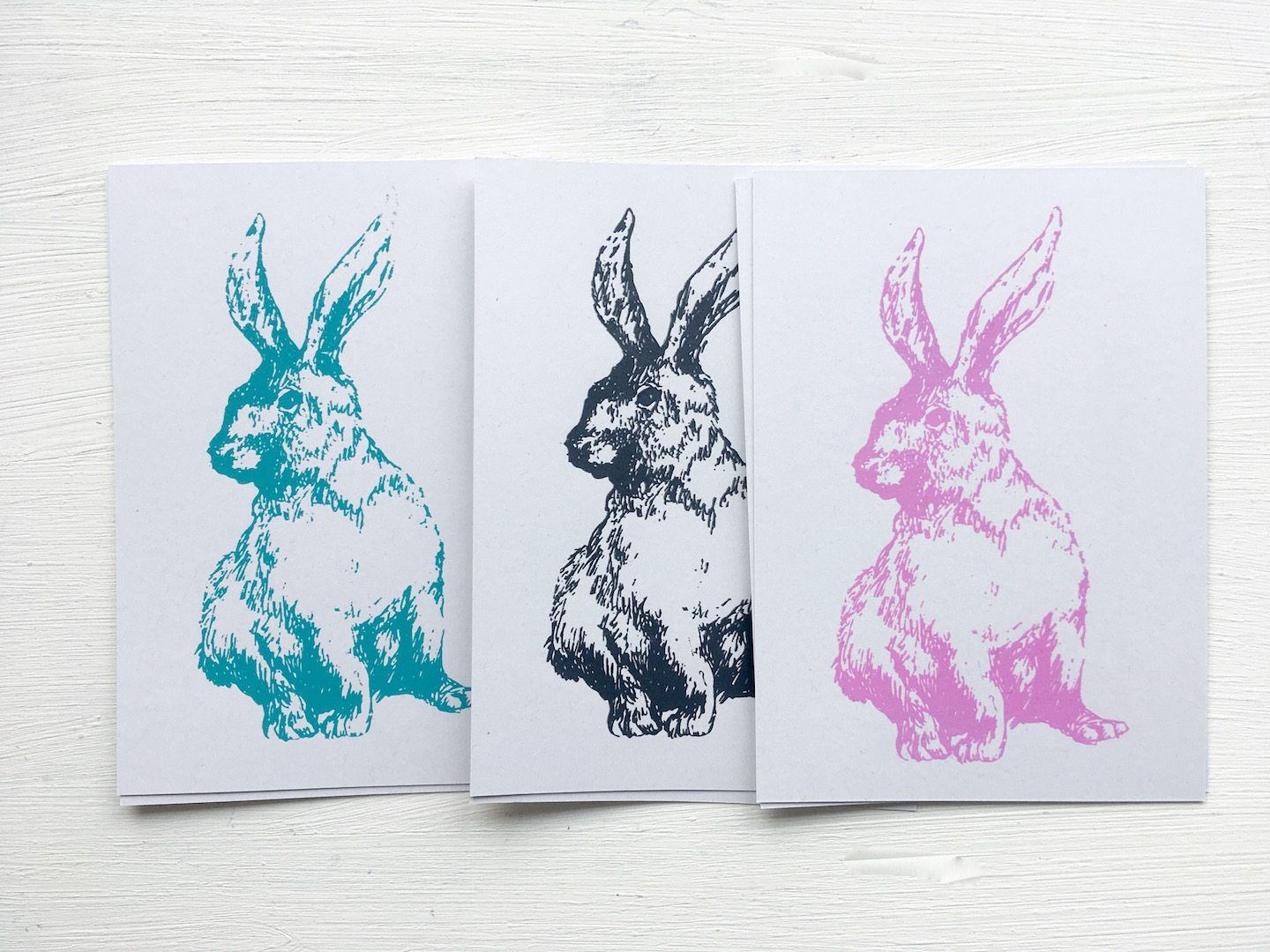 Handbedruckte Hasen auf 300 g/m² Recyclingkarton im