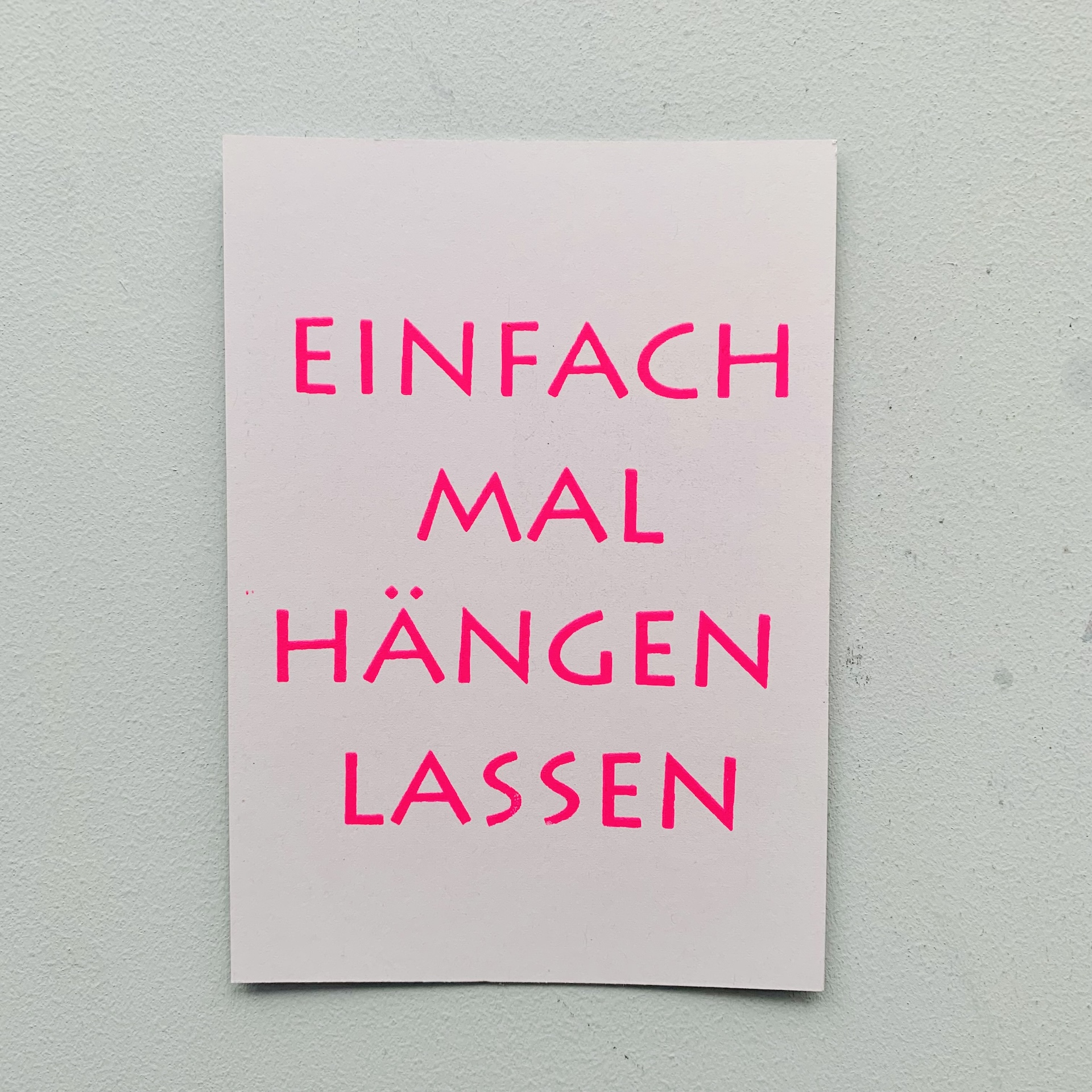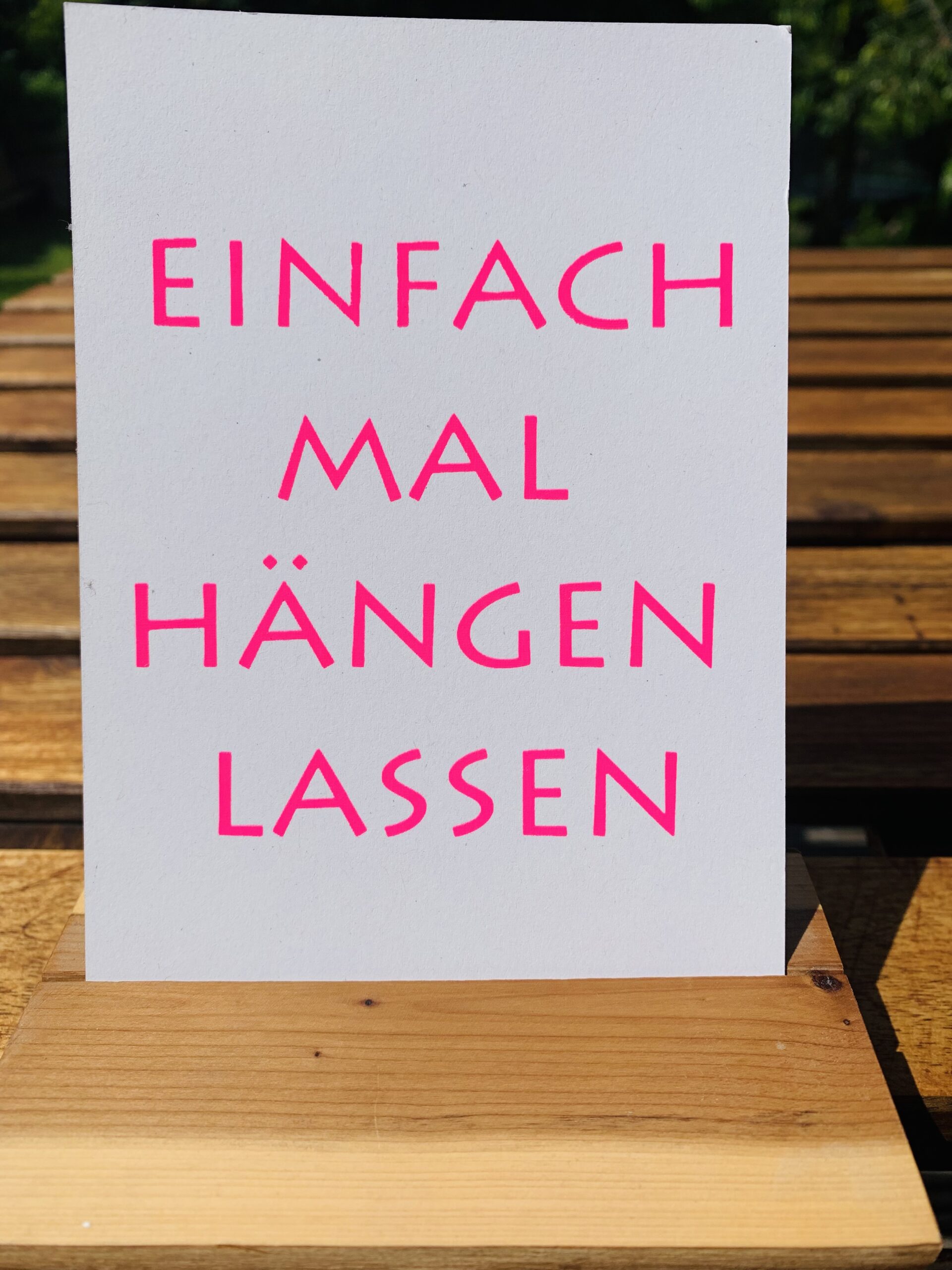 Postkarte Einfach mal hängen lassen Handsiebdruck