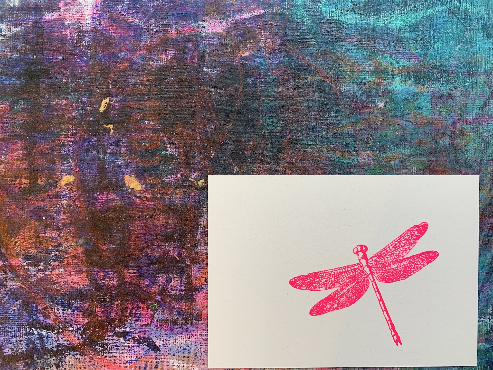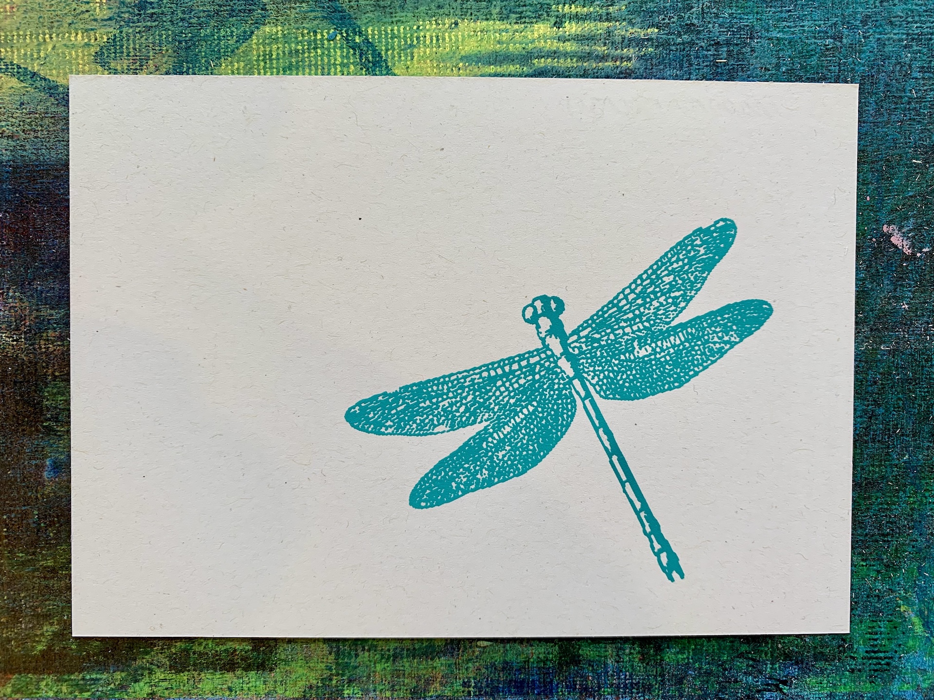 postkarte mit libelle handsiebdruckPostkarte mit Libelle Handsiebdruck