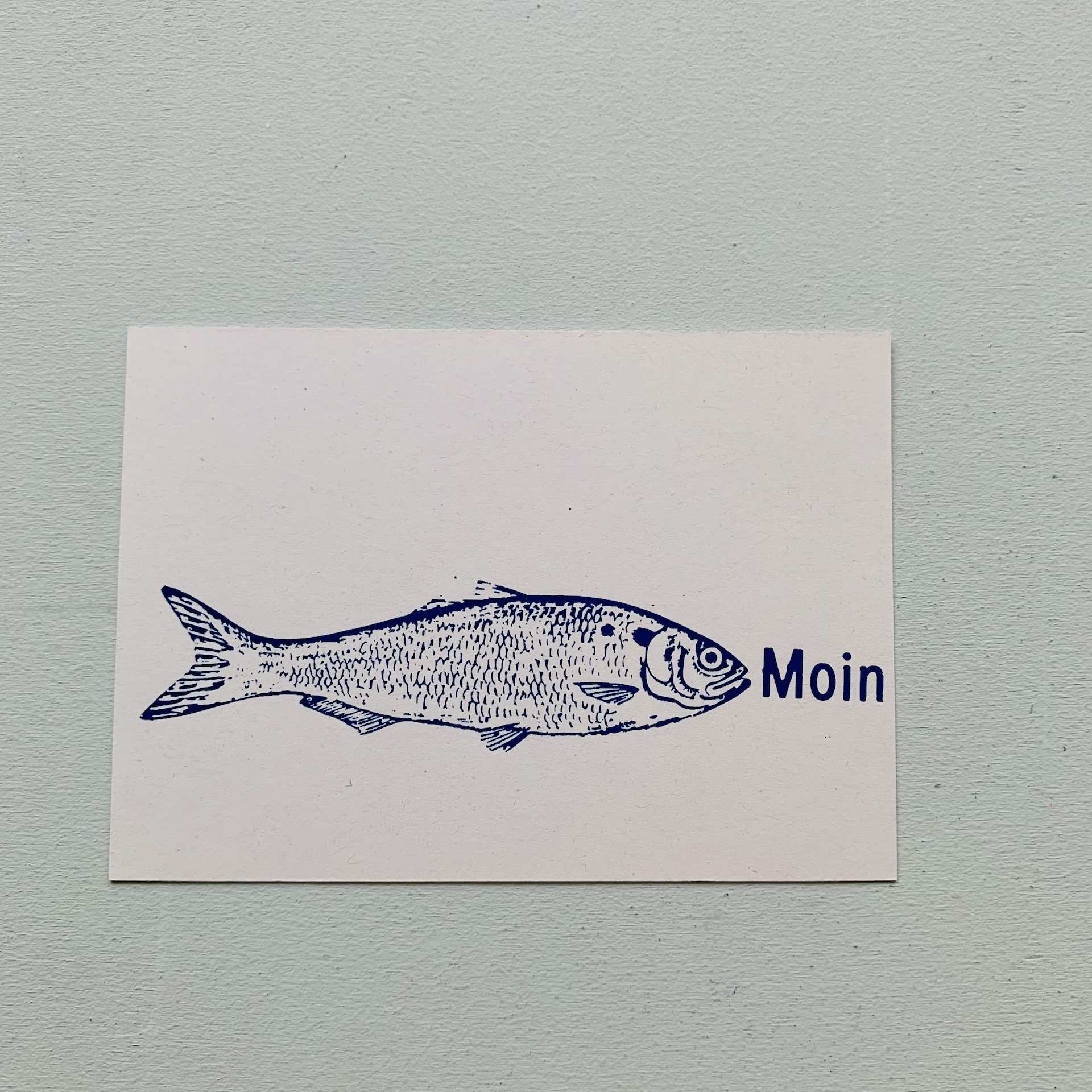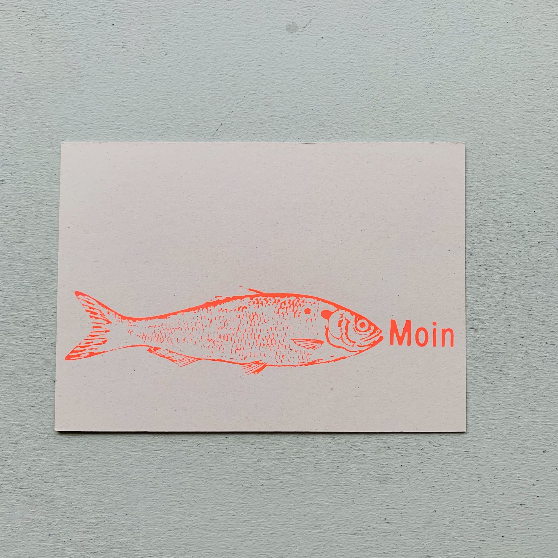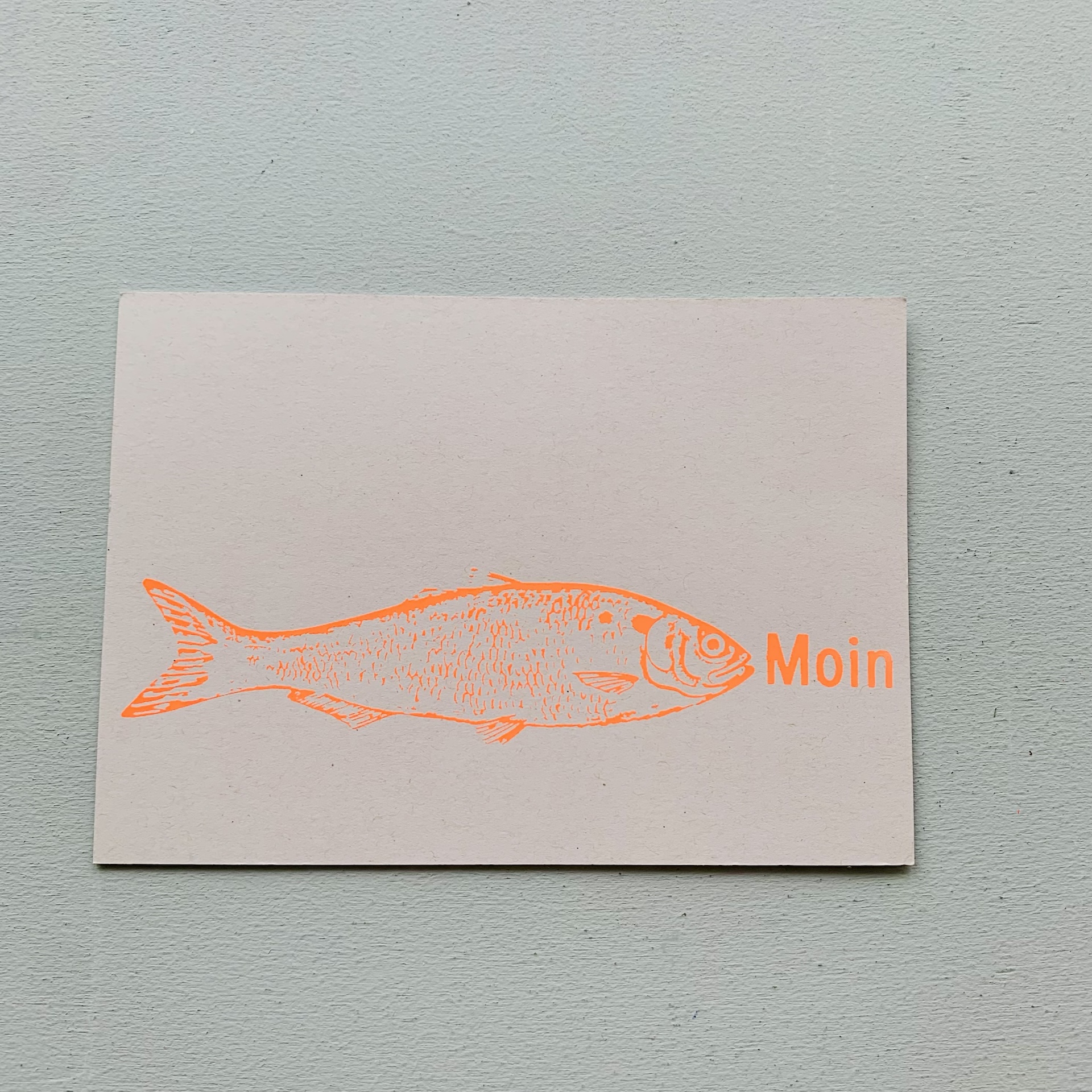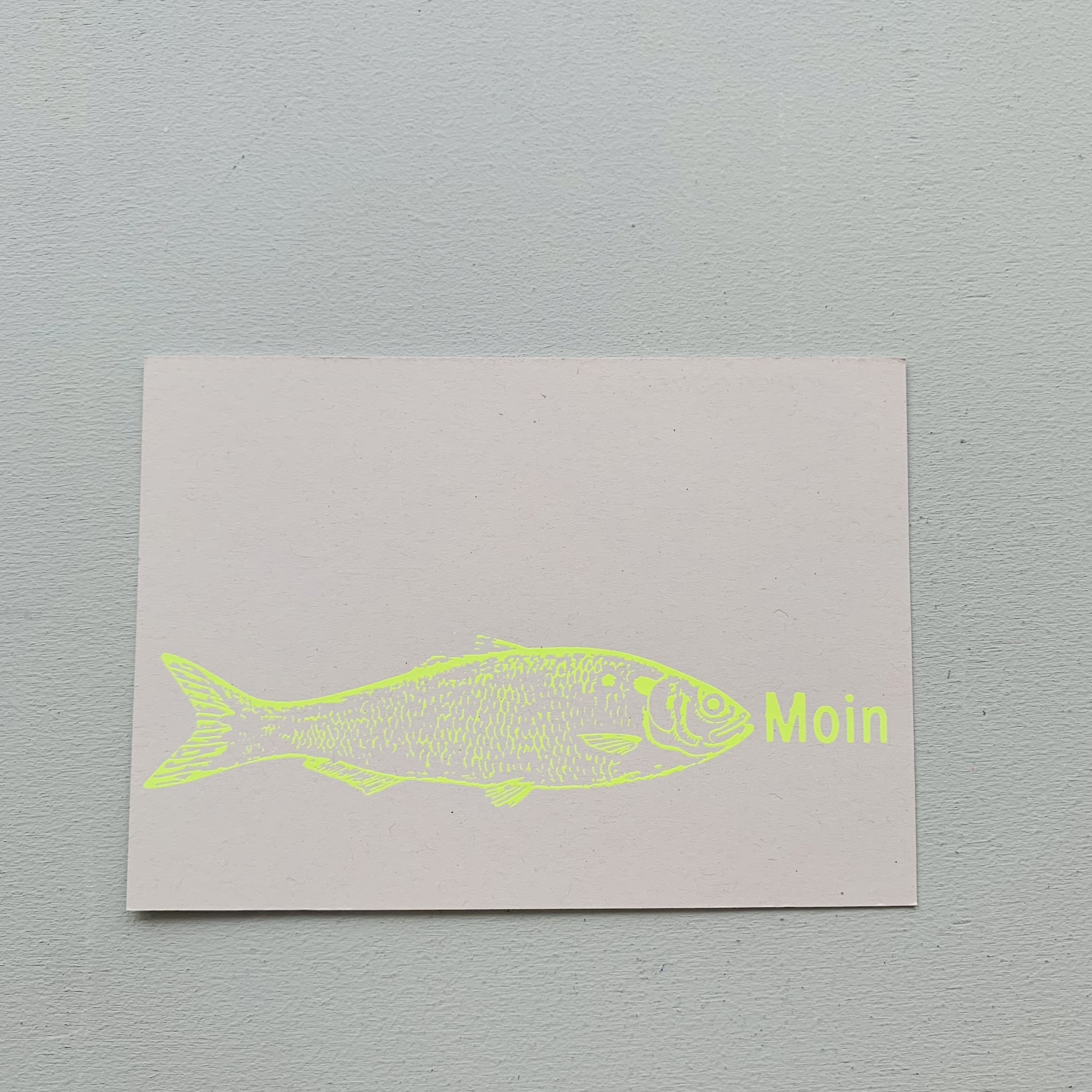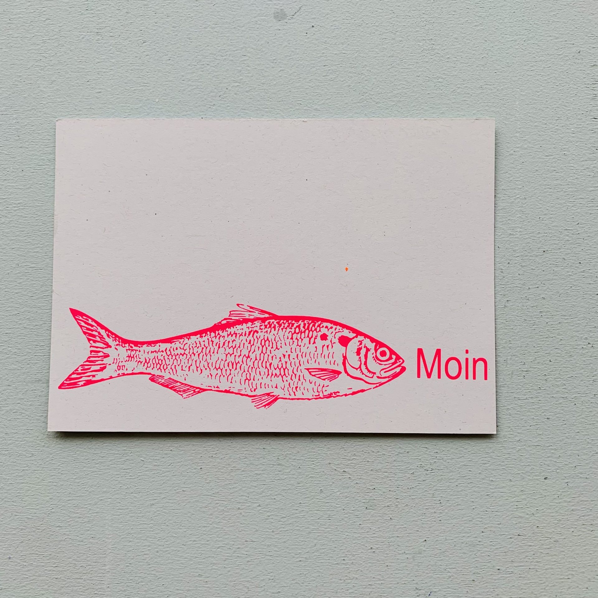 Postkarten mit Fisch Moin in Neonfarben Handsiebdruck