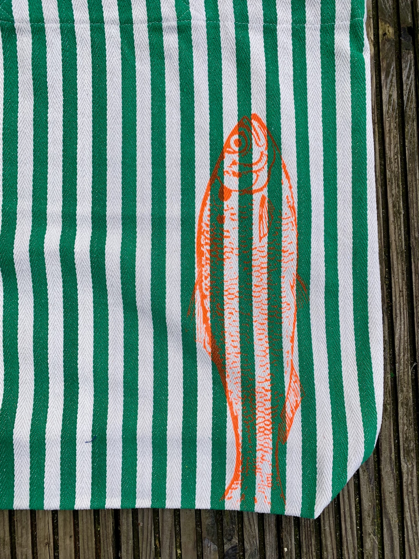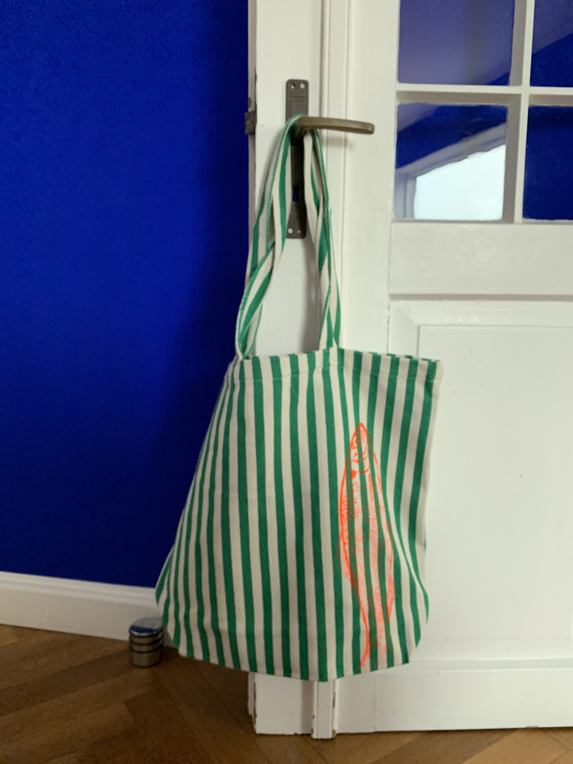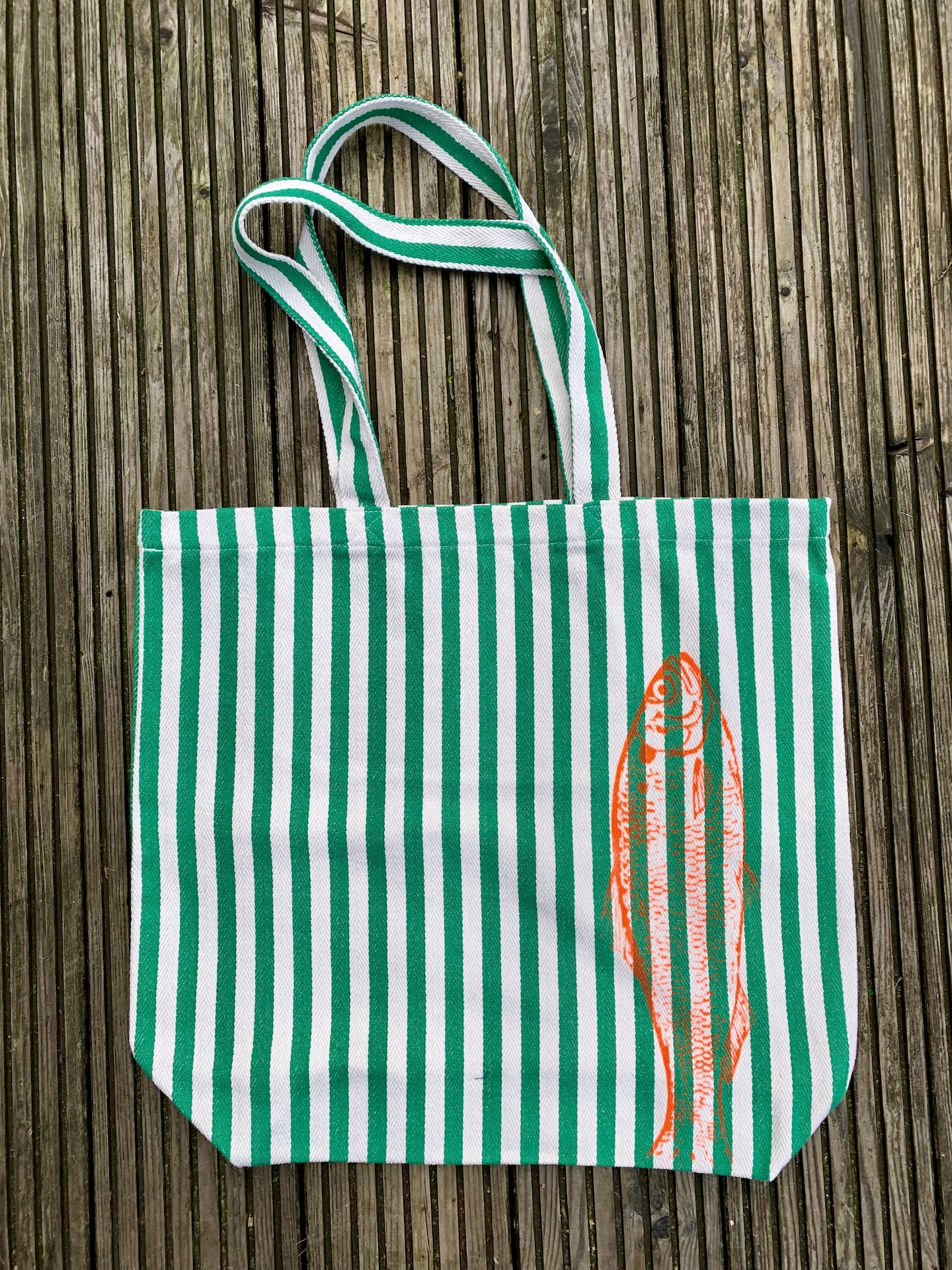 Die erfrischende und praktische Shoppingtasche ist aus einem schönen festen und gewebtem Baumwollstoff und wurde mit wasserbasierter per Hand mit Siebdruck bedruckt.