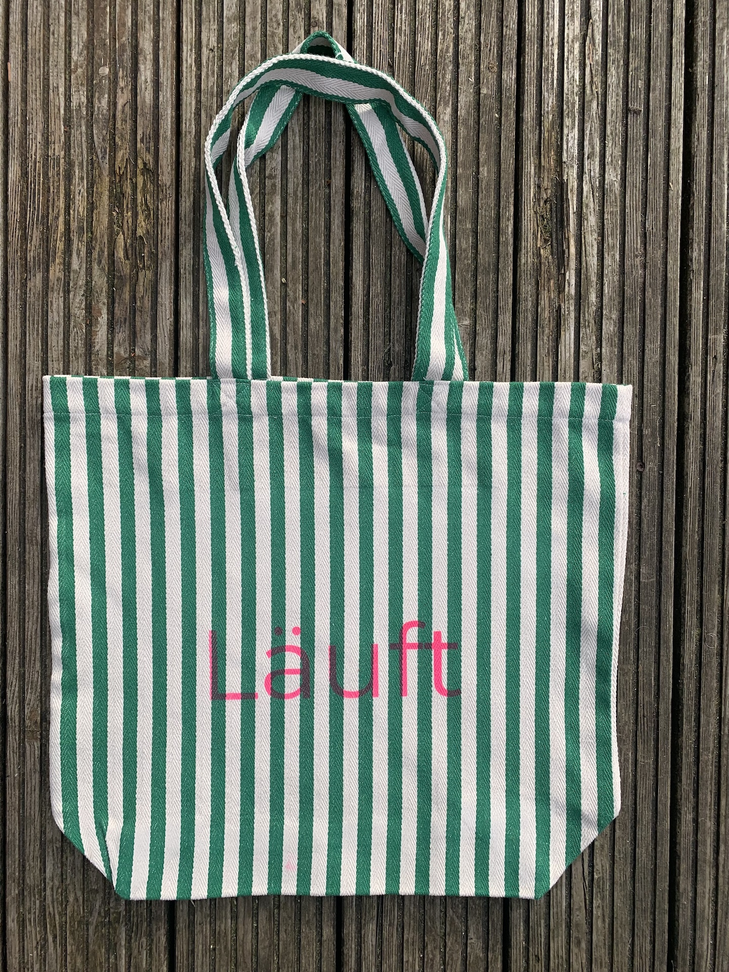 Die erfrischende und praktische Shoppingtasche ist aus einem schönen festen und gewebtem Baumwollstoff und wurde mit wasserbasierter per Hand mit Siebdruck bedruckt.
