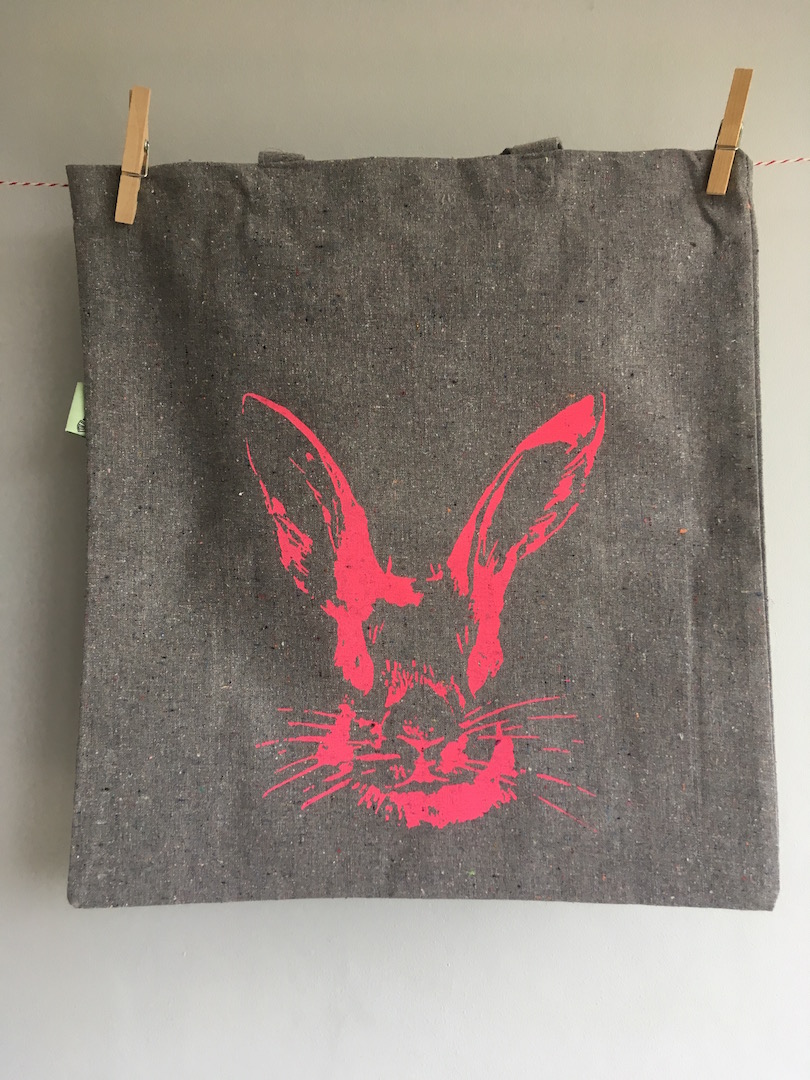 Die Tasche wurde mit wasersbasierter Farbe per Hand mit Siebdruck bedruckt. Jeder Druck ein Unikat.