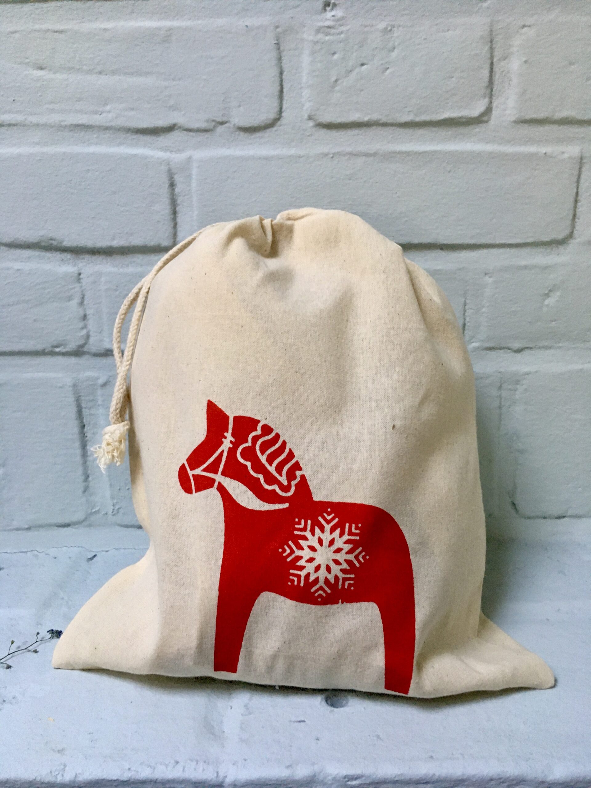 Weihnachtlicher Baumwoll-Büddel mit Dalapferd